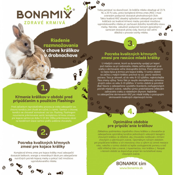 Vysoko akostné granulované krmivo určené pre chov a výkrm králikov, ktoré zabezpečuje kompletnú výživu králikov.