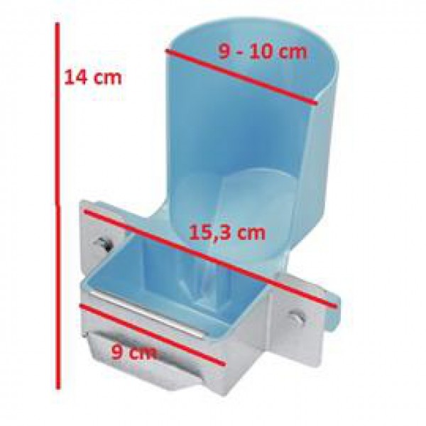 Misková napájačka pre králiky, plastová s plechovou hranou proti ohryzeniu, vhodná na všetky PET fľaše.
